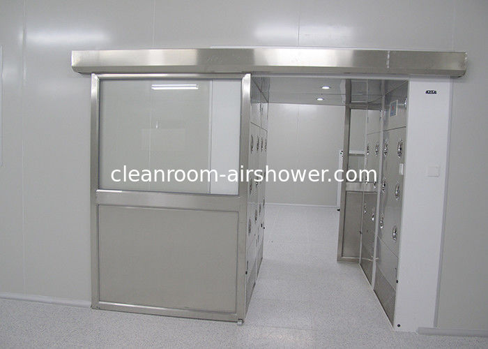 Single Leaf stainless steel 304 Auto Sliding Door Air Shower terowongan untuk bahan di kamar bersih